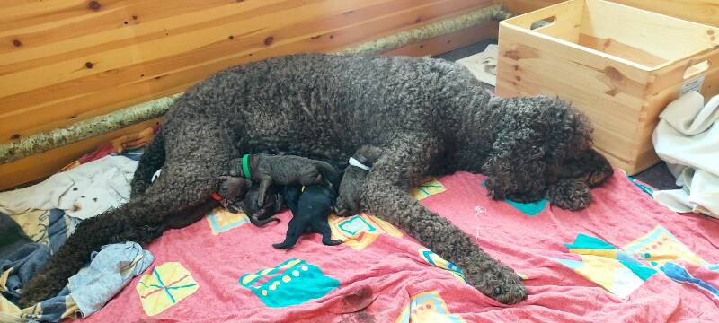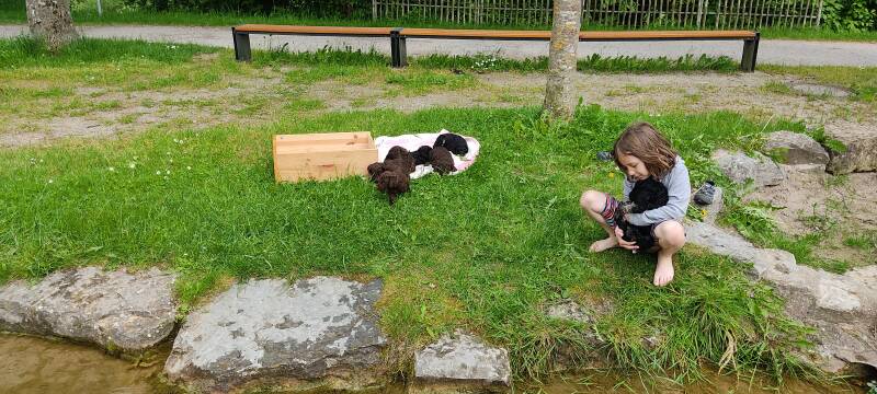 Mitte April ist es endlich soweit. Mayla erwartet ihren ersten Wurf. Alle Vorbereitungen sind bereits getroffen und wir sind schon ganz aufgeregt. In der ersten Juliwoche werden die Welpen dann gechipt, geimpft und mehrfach entwurmt abgegeben. Ausgestattet mit einem kleinen Starterpaket und einer Ahnentafel dürfen sie dann in ihre neuen Familien einziehen.