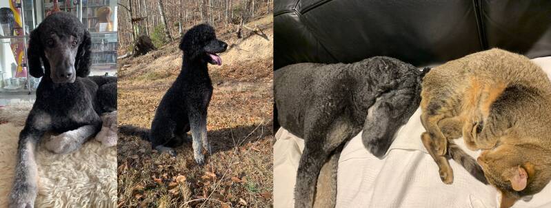 Der Auserwählte hört auf den Namen Mephisto und ist ein liebenswürdiger, aufgeweckter Großpudel in black/tan. Sein Alter beträgt fünf Jahre. Er wurde vom Pudelzucht Verein 82 e.V. auf Zuchttauglichkeit geprüft. Sein Scherengebiss ist korrekt und die Augen sind frei von Erkrankungen, außerdem ist er HD-, ED- und PL-frei. Ein DNA-Profil von Laboklin liegt ebenfalls vor.
